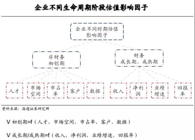 企业在其不同生命周期阶段,因对企业价值影响的因子不一样,所以其估值方法也存在一定差异。